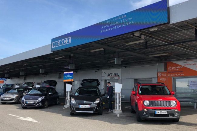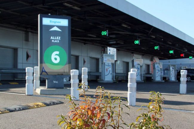 Un totem, installé à l’entrée de votre drive, indique à chaque client le numéro de la piste sur laquelle il doit se rendre. Lorsque toutes les pistes sont occupées, un “stop” est diffusé de façon automatisée.