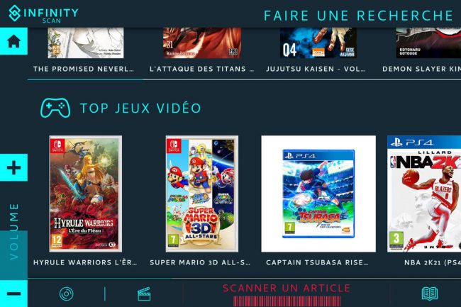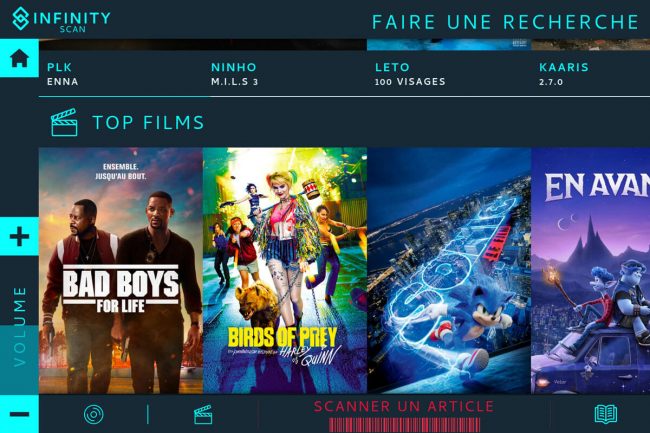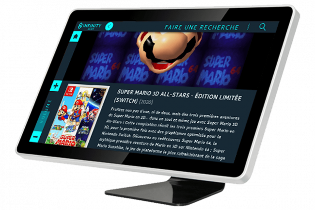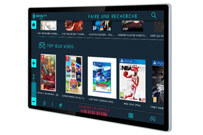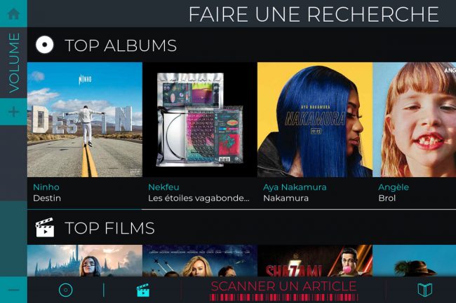 Une solution flexible et personnalisable, ludique et intuitive, qui permet de scanner, rechercher et proposer des contenus enrichis pour tout votre catalogue musique, cinéma, jeux vidéos, livres, etc. Une interface tactile simple et intuitive pour une prise en main instantanée par vos clients.