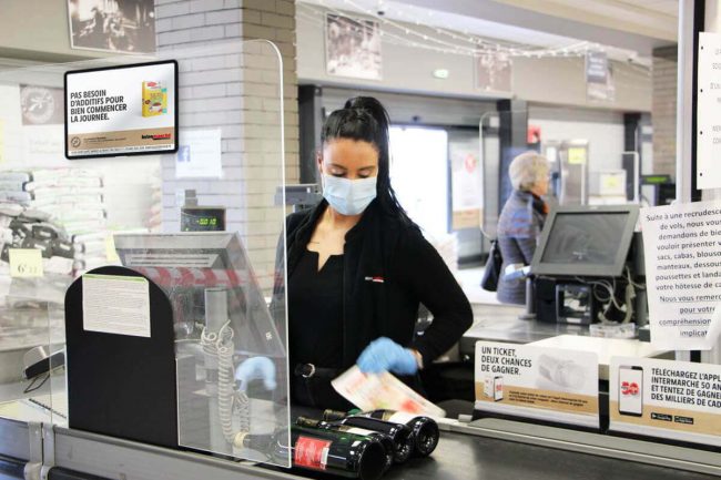 Supprimez enfin l’affichage papier sur vos vitres de protection, et diffusez vos messages au bon endroit, au bon moment.