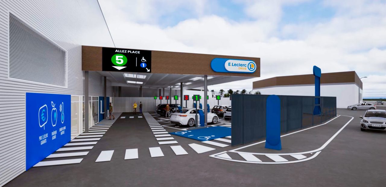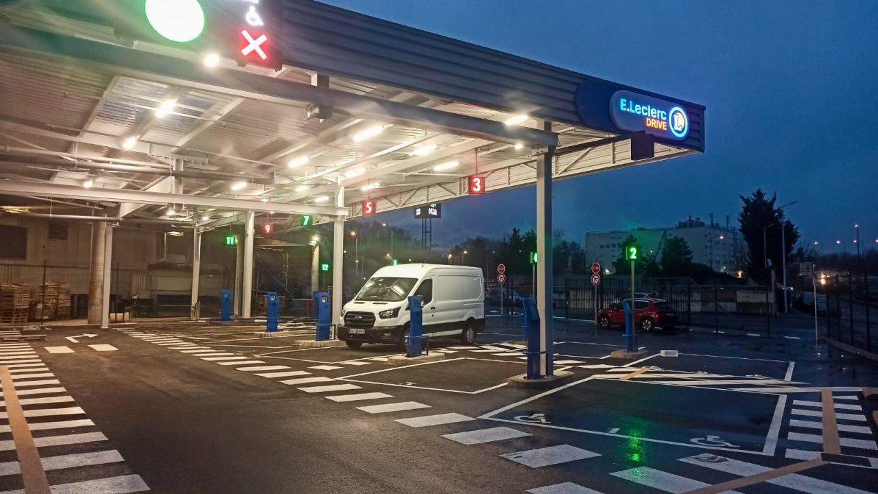 Le drive E.Leclerc d’Éragny s’inscrit dans une nouvelle génération de sites, alliant esthétique moderne et organisation pensée pour gérer un fort volume de clients. Sa configuration à double rangée permet d’optimiser l’accueil tout en garantissant une circulation fluide.