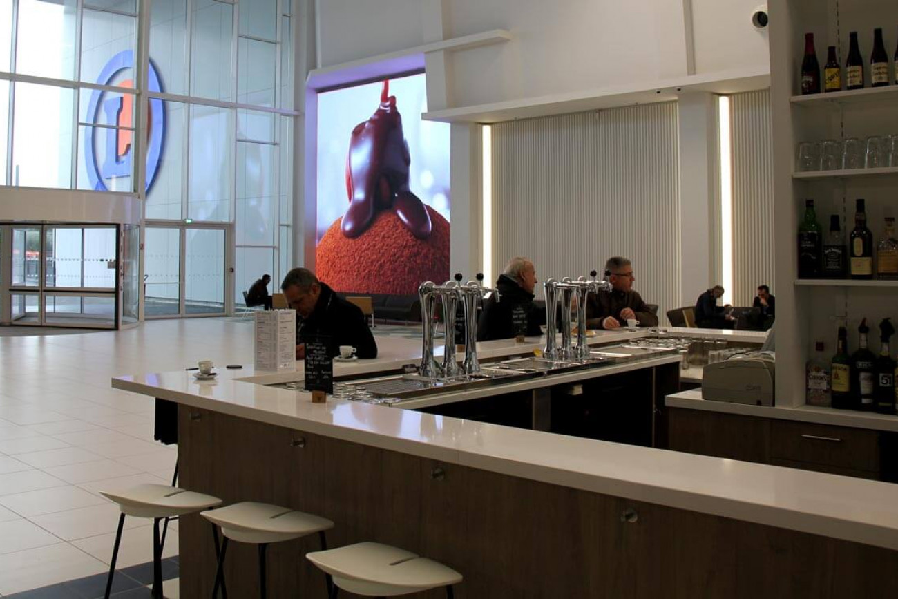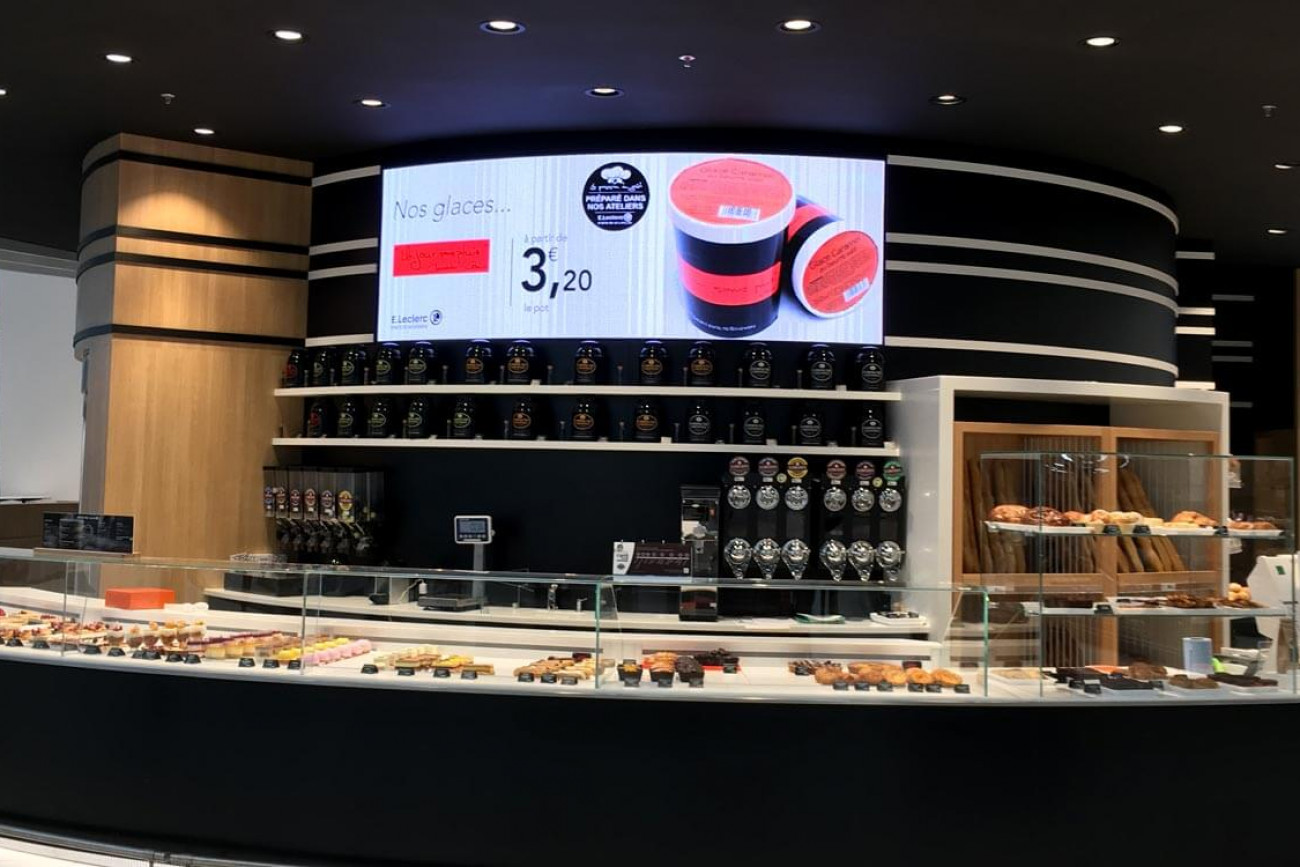 Nous avons installé de nombreux écrans LED grand format aussi bien en façade qu’à l’intérieur du magasin :