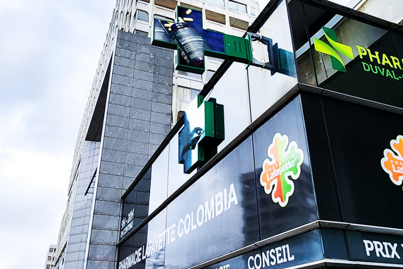 La Pharmacie Lafayette Colombia a choisi Vega pour moderniser sa signalétique avec deux croix de pharmacie full color :